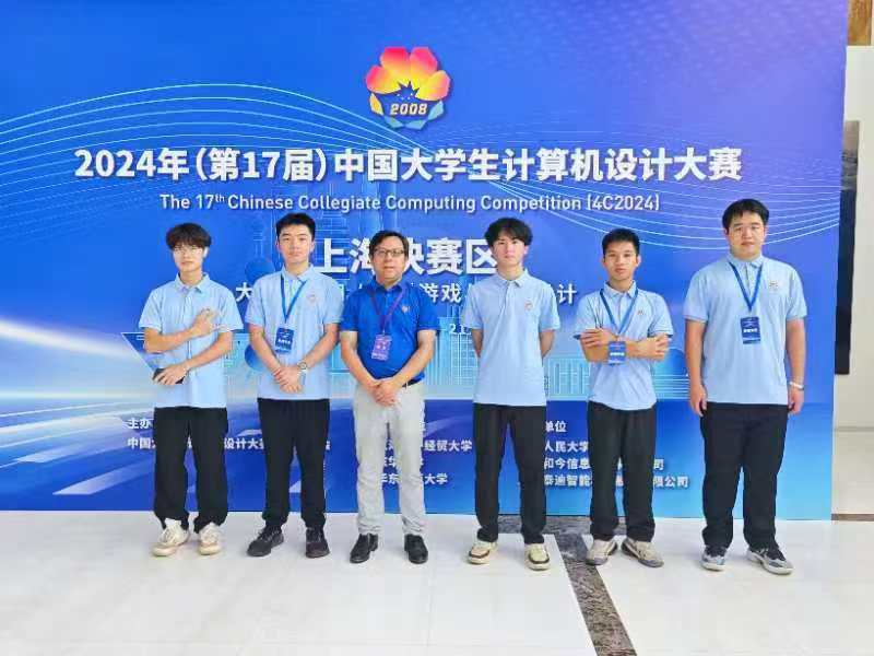 黄鸿麟在第十七届中国大学生计算机设计大赛赛场上拍照留念(右一)