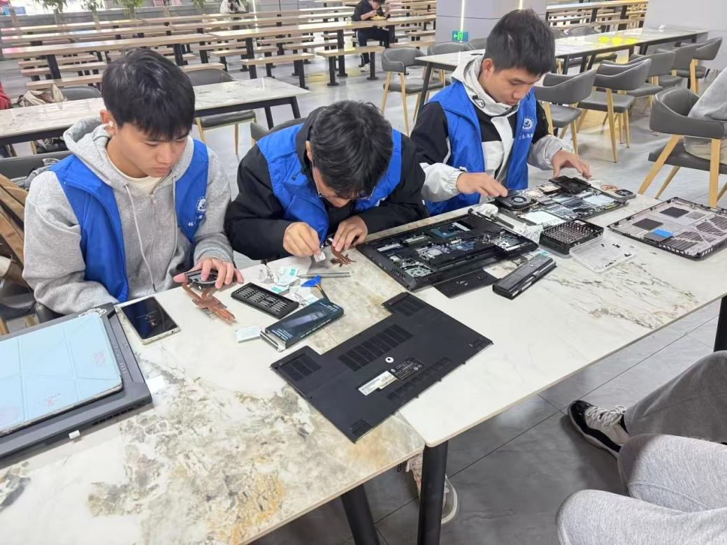 陈思杭参与社团义务维修拆机清灰(右1)