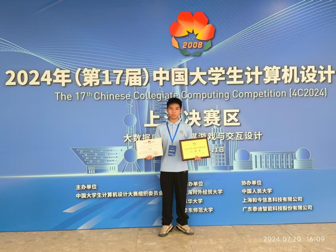 陈思杭去上海参加国赛并且获得二等奖