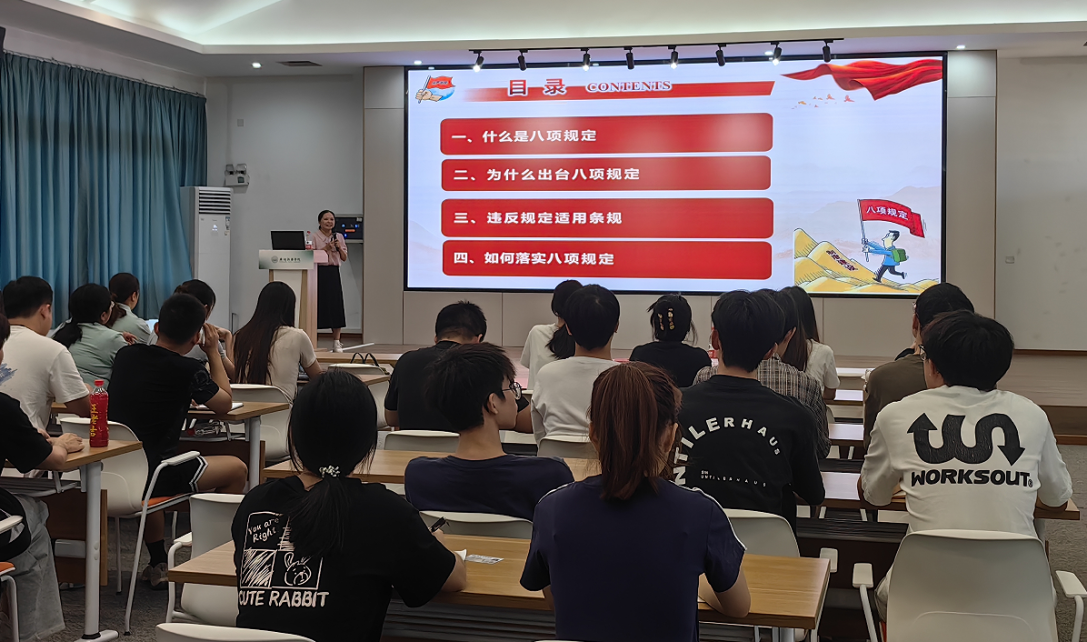 为深入贯彻中央八项规定精神学习教育,持续推进作风建设常态化、长效化,引导支部成员筑牢思想防线、强化纪律自觉,10月11日下午,suncitygroup太阳集团师生联合党支部在东莞校区格物楼四606报告厅,组织开展中央八项规定精神集中学习活动。会议由支部委员邓芳老师主持。