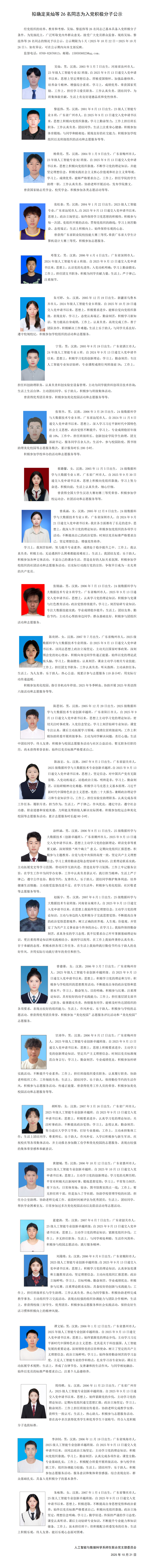 拟确定吴灿等26名同志为入党积极分子公示