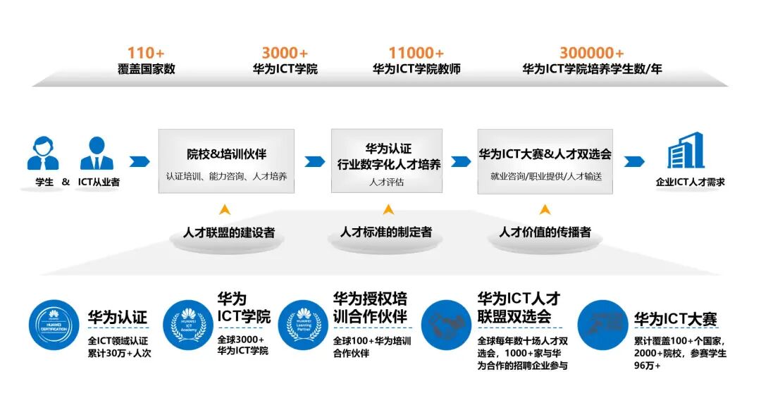 华为ICT学院是华为公司主导、面向全球的校企合作项目,深度融合华为全球领先的ICT技术生态与产业实践场景,旨在全球范围内为社会及ICT(IT信息技术&CT通信技术)产业链培养创新型和应用型技术人才。