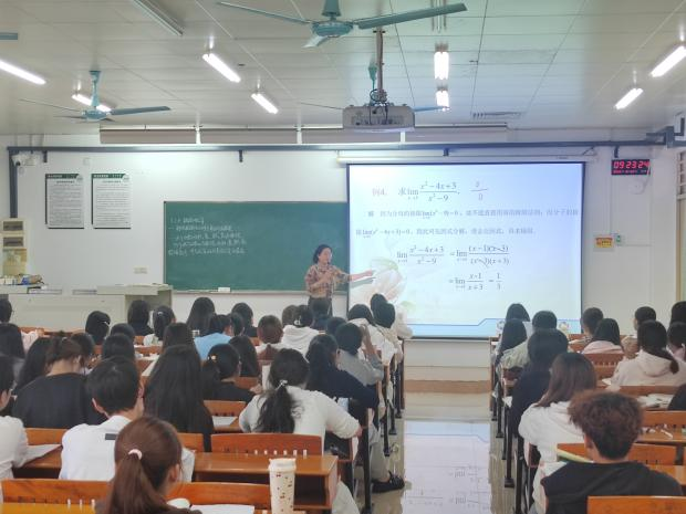 •第6周周三,王学顺老师以《数列的极限》为授课主题,依托清晰的逻辑脉络与鲜活的生活案例,将抽象的数学概念具象化,引导学生层层深入理解数列极限的核心定义与本质规律;张亚男老师围绕《初等函数》展开教学,通过系统梳理函数核心性质、结合典型实例演算推导,帮助学生构建扎实的初等函数知识框架,强化知识应用能力。