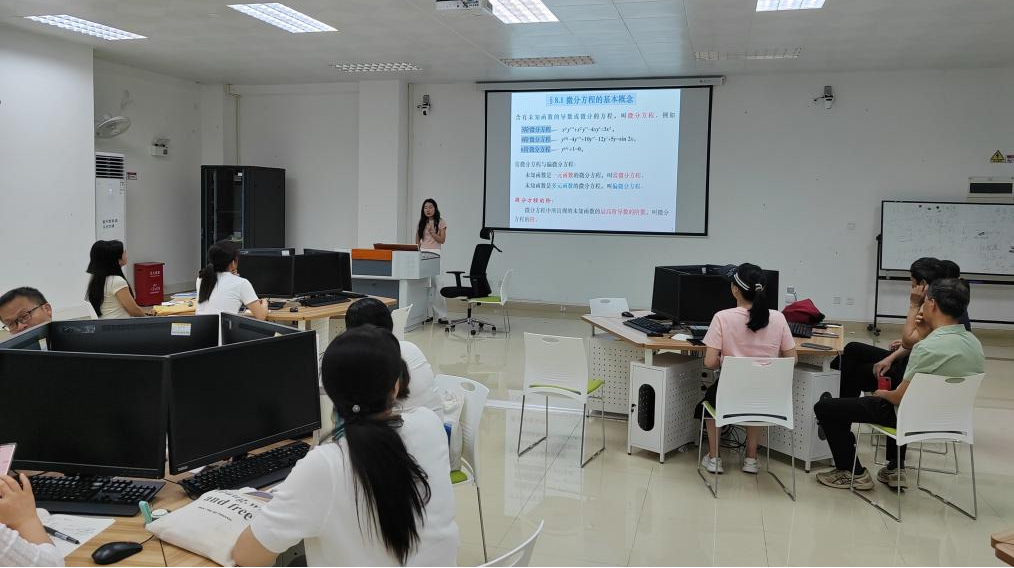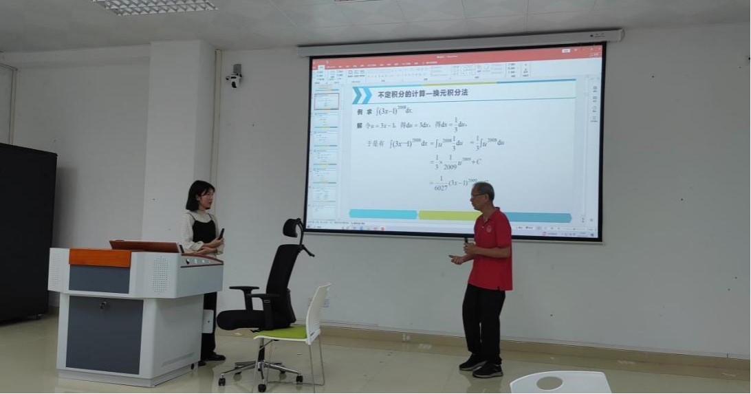 在活动中,三位青年教师邓丽朝、张亚男、张莎莎依次登台授课。邓丽朝老师呈现了一堂关于高等数学积分部分的复习课,她条理清晰地梳理了知识点;张亚男老师则通过常微分方程的复习课,以典型例题串联起核心内容;张莎莎老师则专注于线性代数中的特征方程和特征向量,讲解既深入又浅显易懂。三位青年教师凭借严谨的备课态度和扎实的专业知识,展现了他们出色的教学潜力。