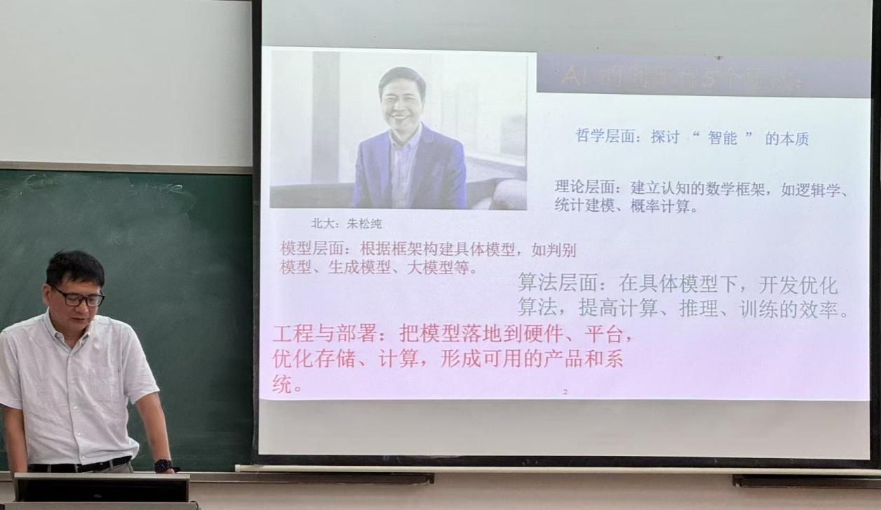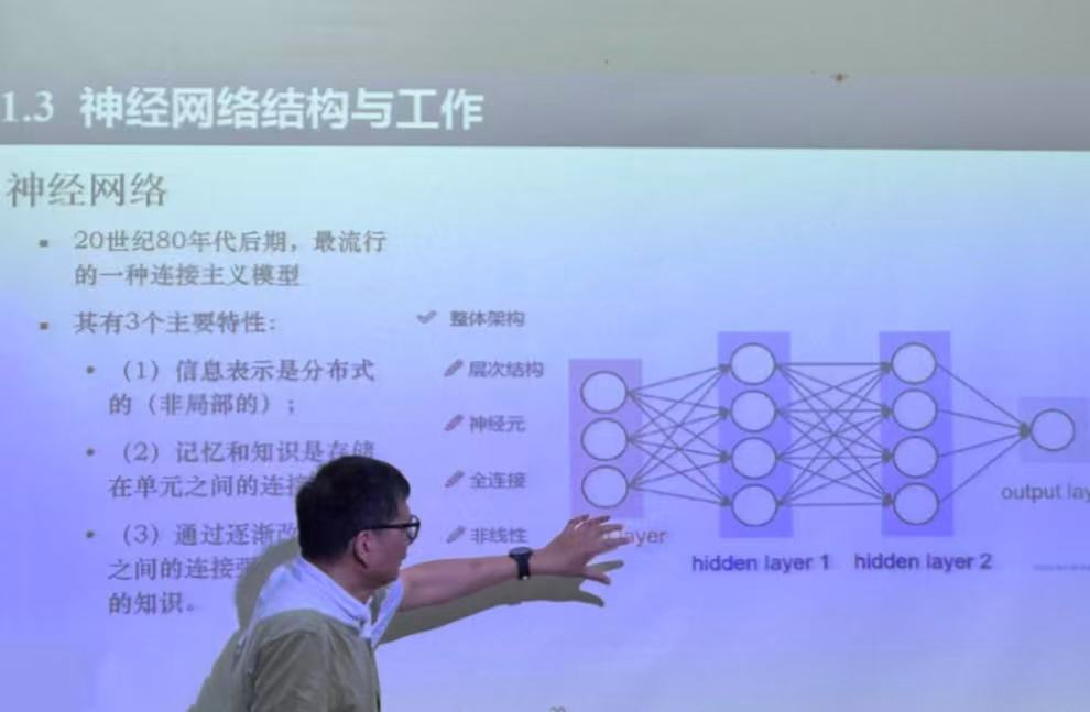 课堂中,周教授系统介绍了人工智能在地震预测领域的前沿研究进展,结合日常生活场景,深入浅出剖析当下人工智能技术的优势与局限,寄语同学们以理性视角审视 AI 发展,避免陷入技术盲从。继而还向同学们介绍了北京大学人工智能研究院朱松纯院长关于 AI 创新的五个层次,自然引入课程核心内容 “人工神经网络及其应用”,从而展开系统讲授。其融学术深度与通俗表达于一体的授课风格,引领同学们沉浸于人工神经网络的知识世界,在理论阐释与实例解析中感受学科魅力。