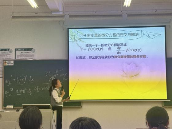 陈苍教授通过水库污染案例,深入阐释了分离变量法在微分方程中的应用。她逐步引导学生理解并分析案例,同时构建模型,详细解释了该方法的运用。此外,她还启发学生珍视自然环境,强调了绿水青山对于可持续发展的重要性。