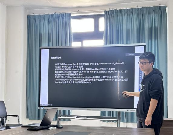 为帮助青年教师夯实教学基本功,数据科学与大数据技术教研室于2025年3月26日举办“青年教师说课能力提升研讨会”。活动过程中,王子畅、何玉花两位教师先后进行了时长为20分钟的说课展示。王子畅老师以《Python数据分析》课程为说课主题,重点展示了"美国大选的文本数据分析"教学案例。该教学设计通过设置悬念和联系社会热点,从数据采集、清洗到可视化呈现的完整流程展开讲解,有效激发学生的学习兴趣。何玉花老师则围绕《Photoshop的应用》课程展开说课,针对"人像精修"这一实践性较强的教学模块,通过分步骤演示与实时互动操作,将软件功能学习与创意实践有机结合,充分展现了信息技术课程的教学特色。两位老师讲授完毕,全教研室教师组成“教学智囊团”,从案例选取的前沿性、课堂互动的有效性、知识体系的逻辑性等维度展开深度点评,也具体指出两位老师在这节课的讲授中的不足与需要提高的地方,便于两位老师日后教学能力的提升。