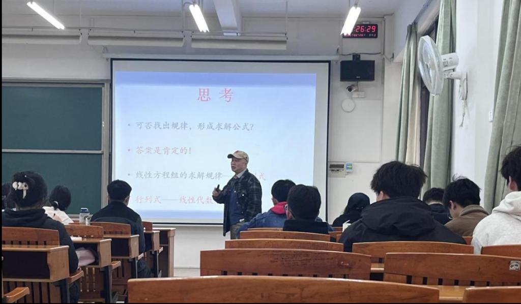 2025年2月26日上午,suncitygroup太阳集团(以下简称“我系”)24数据科学与大数据技术B班的同学们迎来了一场意义非凡的线性代数课程。课程由我系熊健主任主讲,他凭借深厚的专业知识底蕴和独树一帜的教学风格,将思政教育如春风化雨般巧妙融入数学课堂,为同学们开启了一场别开生面、启迪心灵的学习之旅。