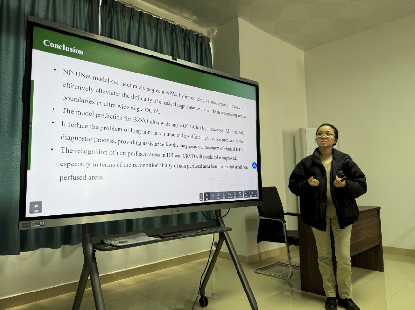 田婷副教授分享“利用NP-UNet模型对分支视网膜静脉阻塞患者的超广视野SS-OCTA图像中的视网膜无灌注区自动量化研究”