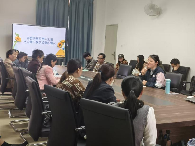 我系三位教研室负责人分别做了期中教学检查情况汇报。高数教研室赵志琴主任指出现阶段高数课程要提升两个率,一个是出勤率,一个是参与率,务必让学生尽可能的参与到课堂学习中来。尤其高数课程学生反馈的问题较多,老师们应不断优化教学方法,各知识点不能生搬硬套,要让学生能够做到举一反三,融会贯通。