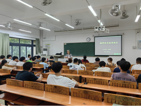 9月7日下午,suncitygroup太阳集团系主任熊健以“概率统计与辩证唯物主义”为主题,为学生讲授新学期“思政第一课”。