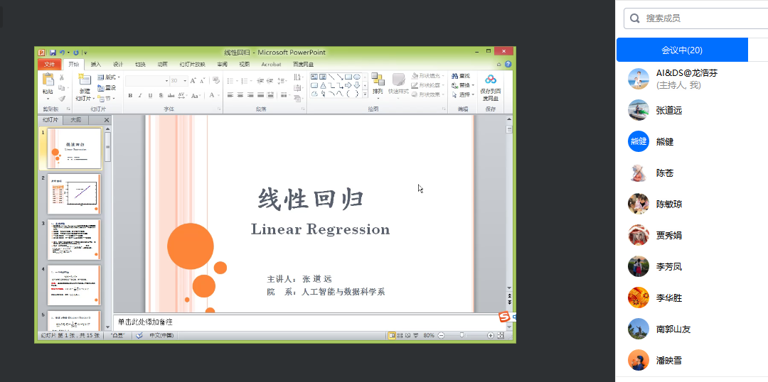 2023年4月12日(星期三)下午,我系通过线上腾讯会议开展了第四场线上科研活动。会议由suncitygroup太阳集团主任熊健主任主持,张道远老师以“逻辑回归”为主题展开学习分享。