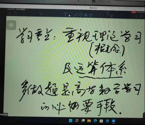 2022年10月9日1-2节,胡建勋教授在腾讯会议线上课堂为2022级自然地理专业的同学上了一次精彩的高等数学课。胡教授以连接初等数学知识点进而推进到高等数学知识点,构建高等数学课程的学习框架为主题,通过初等数学着眼于数学技术训练(恒等式的教学),而高等数学目的是给出数学思想,建立理论体系(不等式的教学)的对比切入课程。进而讲解了高等数学中的变量、函数、极限、导数和积分的知识结构。并强调高等数学作为公共基础课,不仅可以提高思辨能力,还可以为专业课程打下坚实的基础。