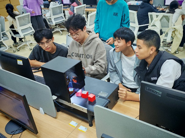 同学们操控十台分拣传送装置完成检测任务后,纷纷表示在此次讲座中学到了工业级AI视觉应用的新技术,在实操分组中培养了团队精神。有两名学生希望对该产品进行改进,将其扩展到玉器识别和安防领域。