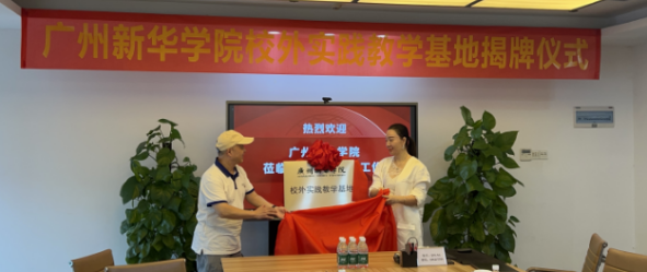 最后,我系主任熊健与中建普联总裁陈红仙共同进行了广州新华学院校外实践基地的揭牌。