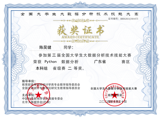 本次大赛由教育部高等学校统计学类专业指导委员会与全国应用统计专业学位研究生教育指导委员会共同指导,中国科技新闻学会大数据专委会联合北京大数据协会主办。大赛分为Excel数据分析和Python数据分析两个赛项,并设有省级赛与全国总决赛两个阶段。只有获得省级赛一等奖(前10%)的选手才有资格参加全国总决赛。