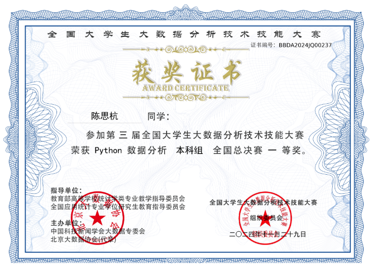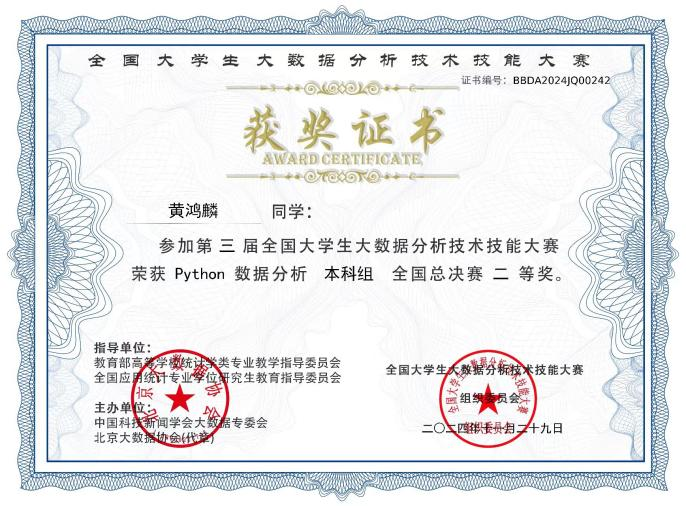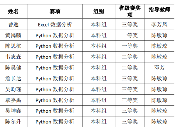 经过激烈角逐,我系学子凭借扎实的数据分析技能和出色的团队协作能力,在众多优秀选手中脱颖而出,荣获多项荣誉。具体获奖名单如下: