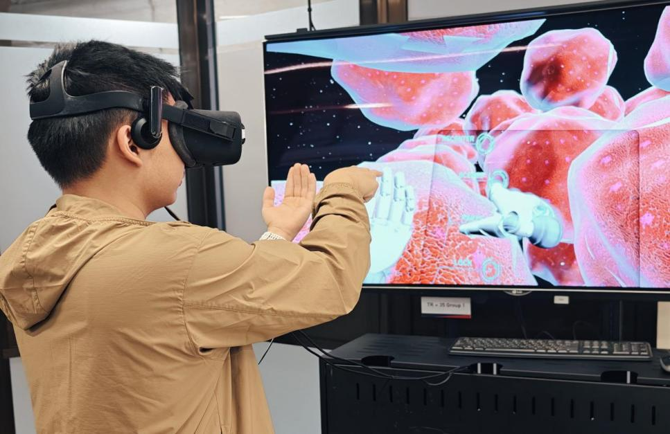 我系黄越同学在体验VR虚拟现实人机交互