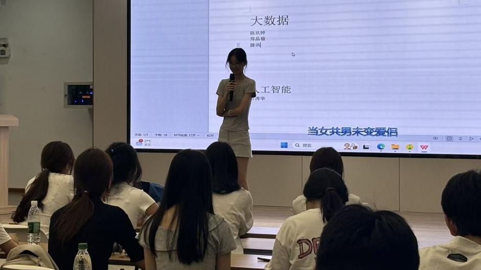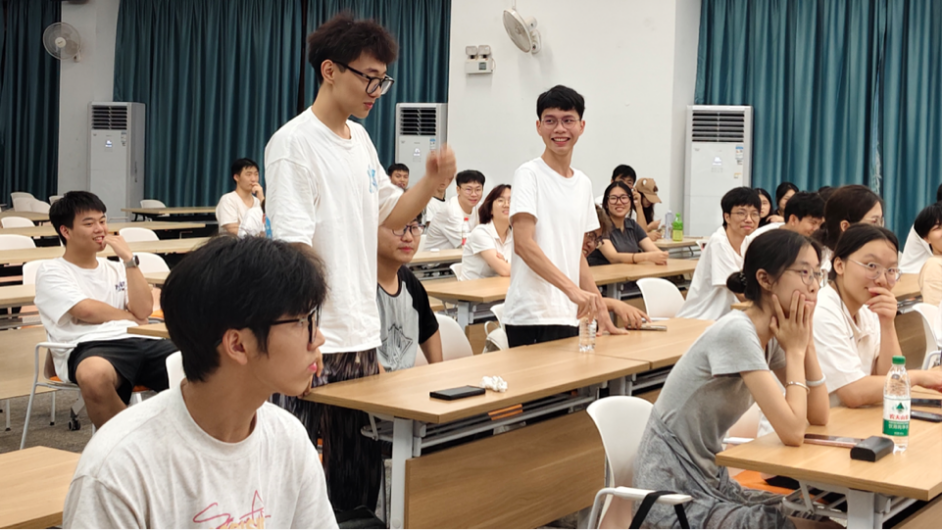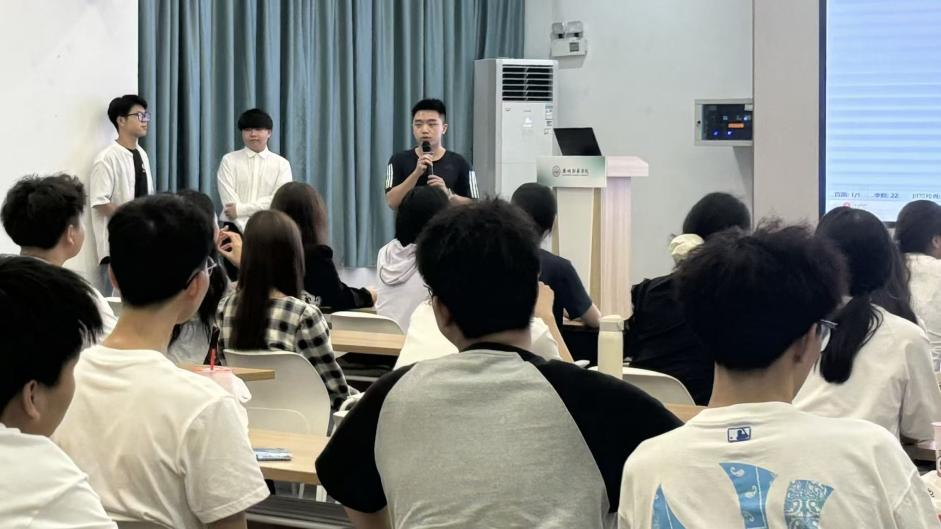 在“师兄师姐经验分享”环节,2023级优秀学生代表陈思杭、黄越依次发言。陈思杭学长鼓励新生抓住每一次上台机会:“大学是勇敢试错的舞台,别因害怕‘不完美’而错过锻炼自己的可能。”并且建议以赛促学:“参与竞赛能快速将理论转化为实践,失败也是定位短板的好机会。”黄越学长则强调实践与责任:“志愿服务能拓宽视野,担任班委或学生干部则能培养领导力——责任感是在服务中自然生长的。”新生们纷纷表示,学长学姐的建议让他们对大学生活有了更具体的规划。