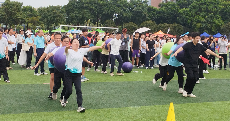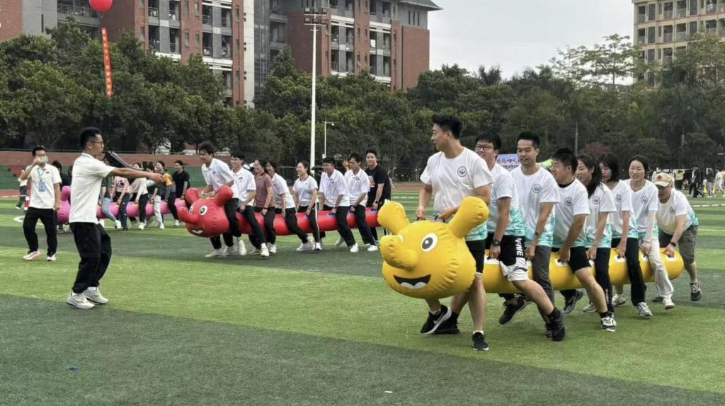 除了传统的田径项目,本次运动会还设置了教工趣味运动项目,这些项目不仅考验了学系老师们的运动技巧,更注重团队协作能力。赛场上,他们相互配合、齐心协力,欢笑声和加油声交织在一起,充分展现了团结友爱的精神风貌