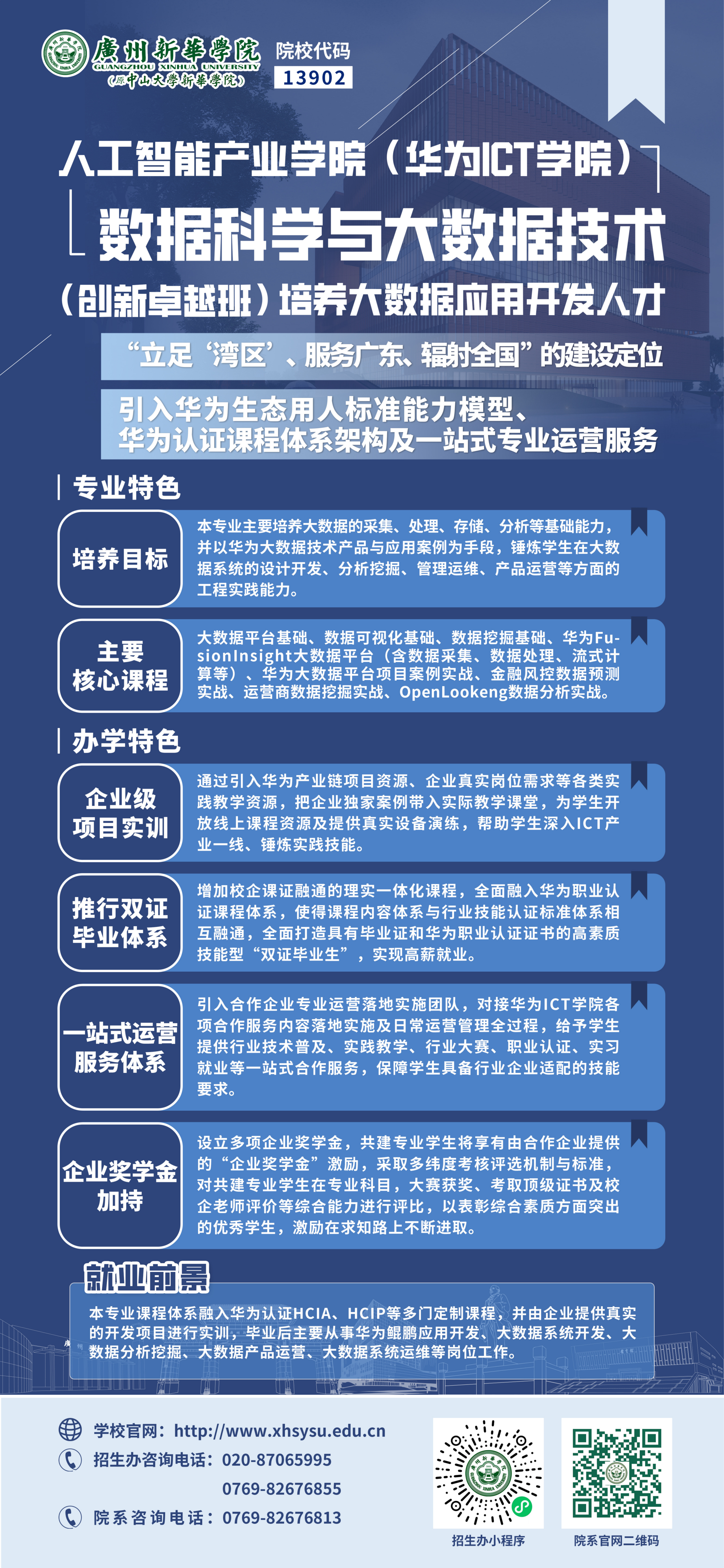 人工智能产业学院(华为ICT学院)-数据科学与大数据技术(创新卓越班)招生简介