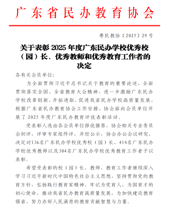 9 月 15 日,广东省民办教育协会公布 2025 年度广东民办学校优秀校(园)长、优秀教师和优秀教育工作者名单。经会员单位推荐、专业委员会初评、专家组终评及公示等严格流程,我系赵志琴老师成功获评 “广东民办学校优秀教师”称号。