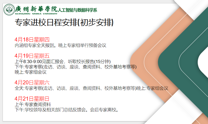目前,学校本科教学合格评估诊断与咨询专家进校考察(第一阶段)安排在4月18日-21日进行,考察期间将严格按照教育部督导局评估体系要求,围绕教育部要求提供的14项支撑材料清单及“三个基本”原则对学校人财物进行严格审查,最终列出问题清单。