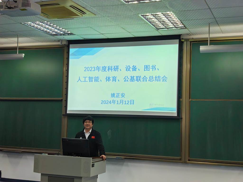 2024年1月12日,在中山大学南校区召开了2023年度科研、设备、图书、人工智能、体育、公共基础联合总结会,会议由分管副校长姚正安主持。