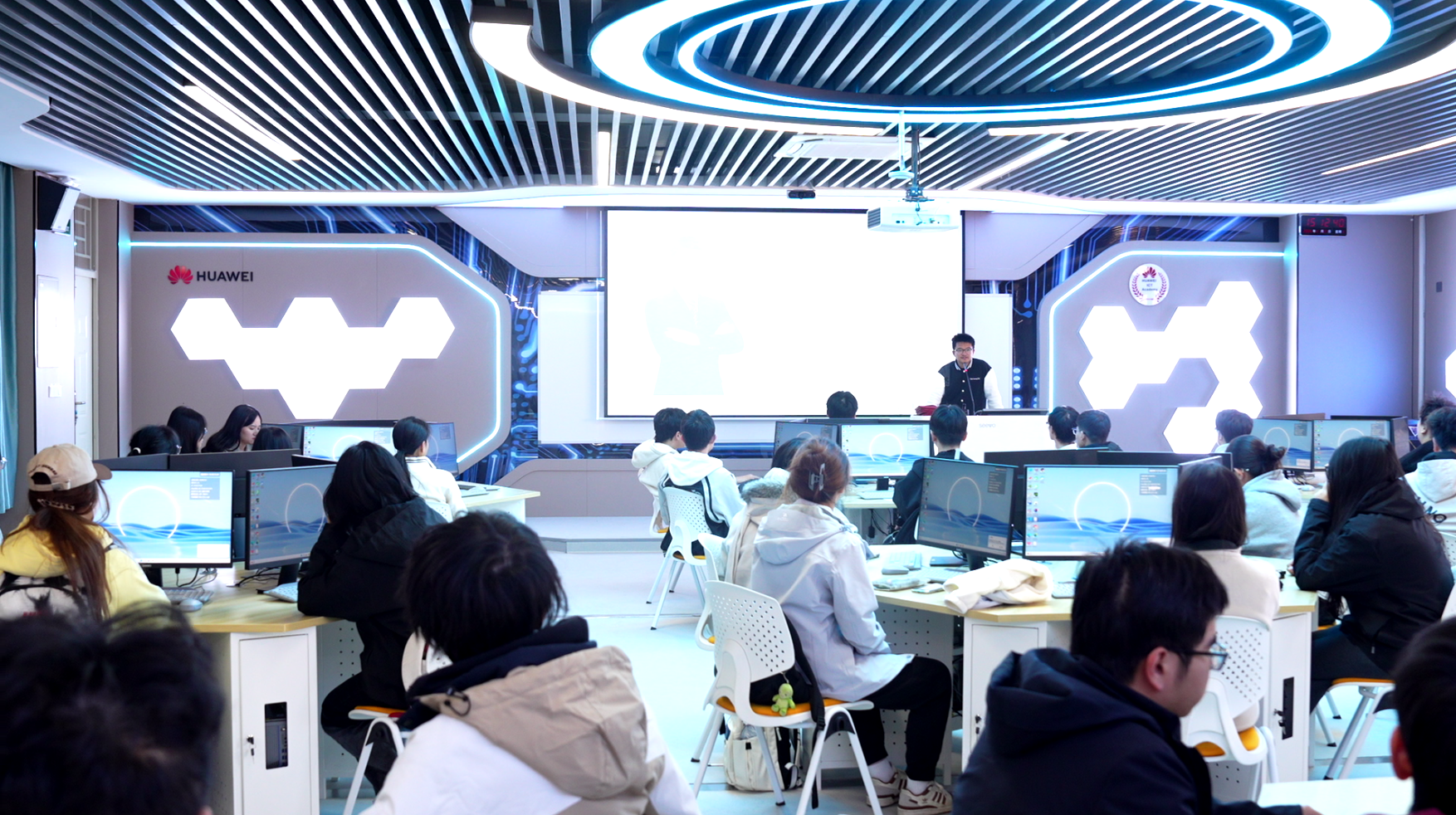 为帮助新生科学规划大学四年,肖老师给出针对性建议:大一夯实数学、编程等基础能力;大二深耕专业核心课程,尝试考取华为HCIA等入门级认证;大三参与项目实训与竞赛,积累实战经验;大四聚焦岗位适配,通过企业实习提升就业竞争力。讲座最后,肖老师与邓经理共同解答了学生关于课程学习、认证报考等问题,现场互动氛围热烈。