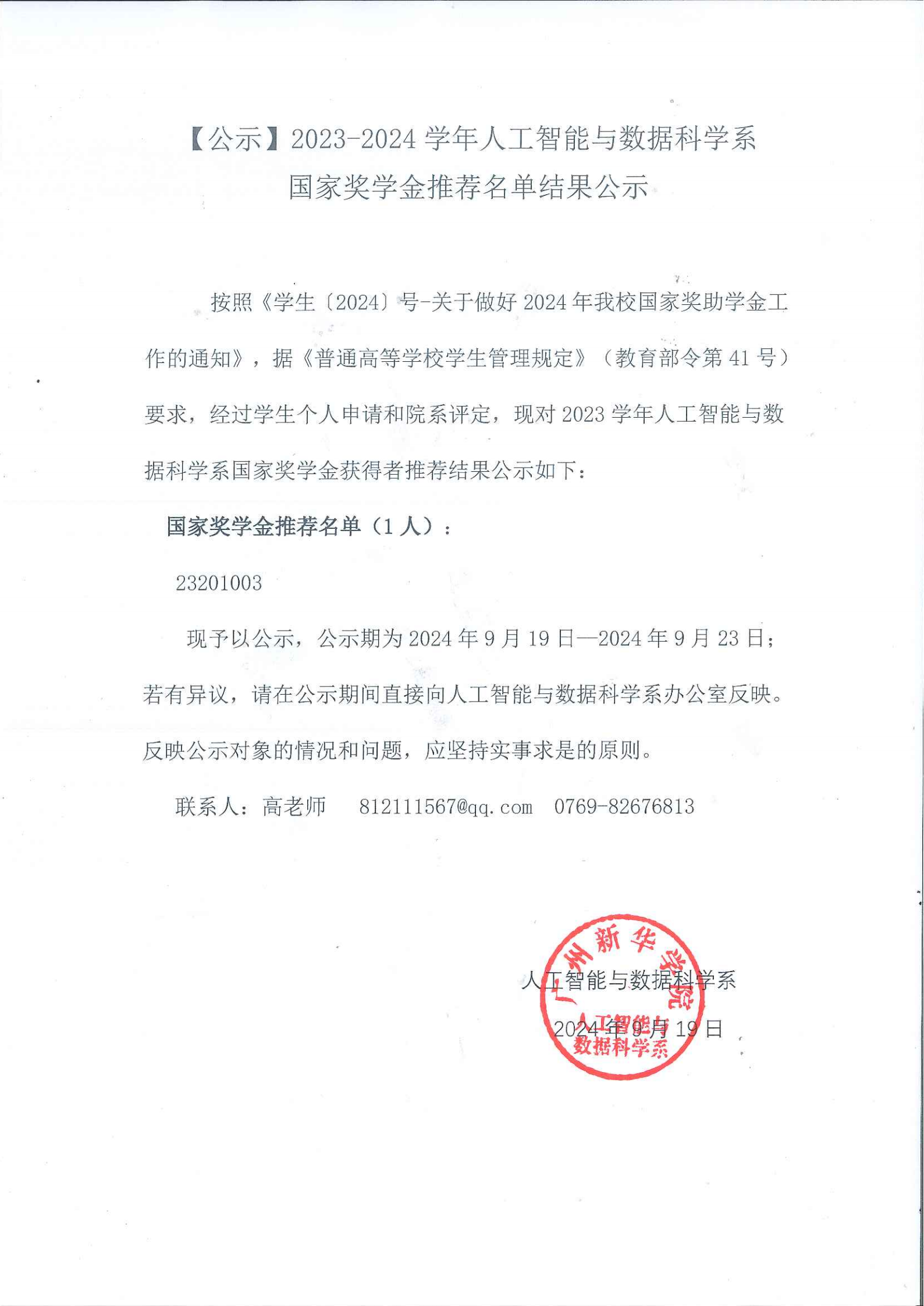 【公示】2023-2024学年suncitygroup太阳集团国家奖学金推荐名单结果公示